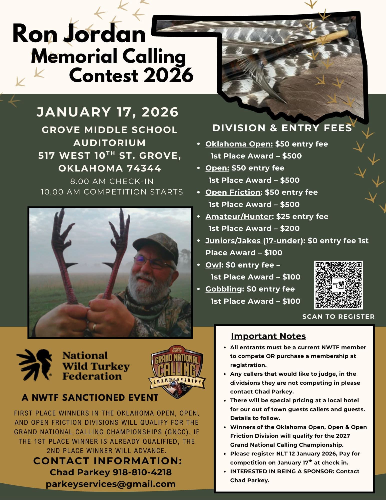 Winners of the Oklahoma Open, Open & Open Friction Division will qualify for the 2027 Grand National Calling Championship.